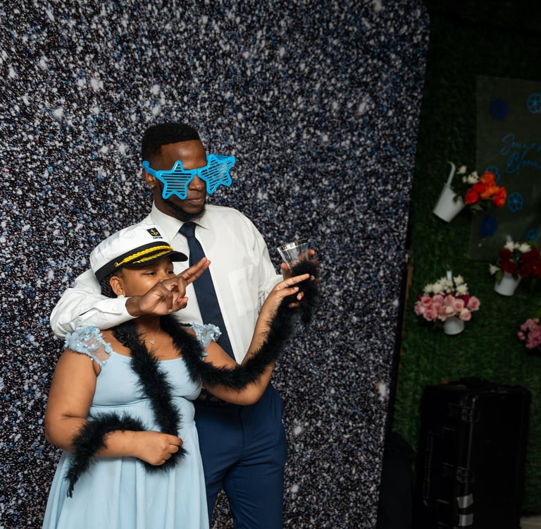 Want a sparkly gold backdrop to match your theme or a custom neon sign with your name? Done!
